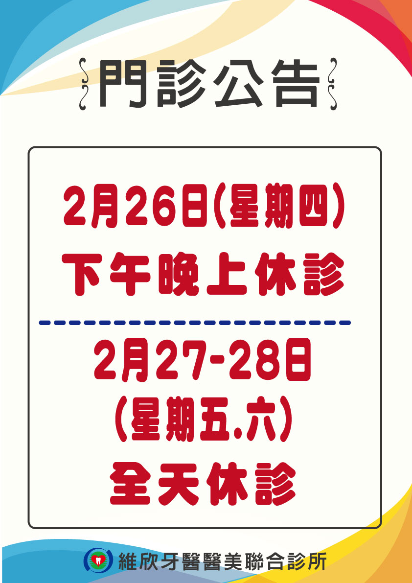#2/27(五)- 28(六) 全天休診